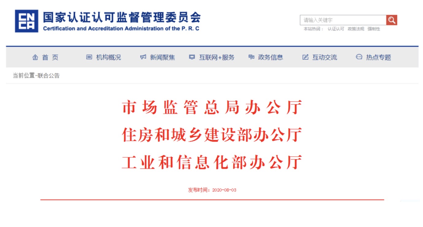 據認監委網站消息,近日,市場監管總局 住房和城鄉建設部 工業和信息化部聯合發布關于加快推進綠色建材產品認證及生產應用的通知,詳情如下: