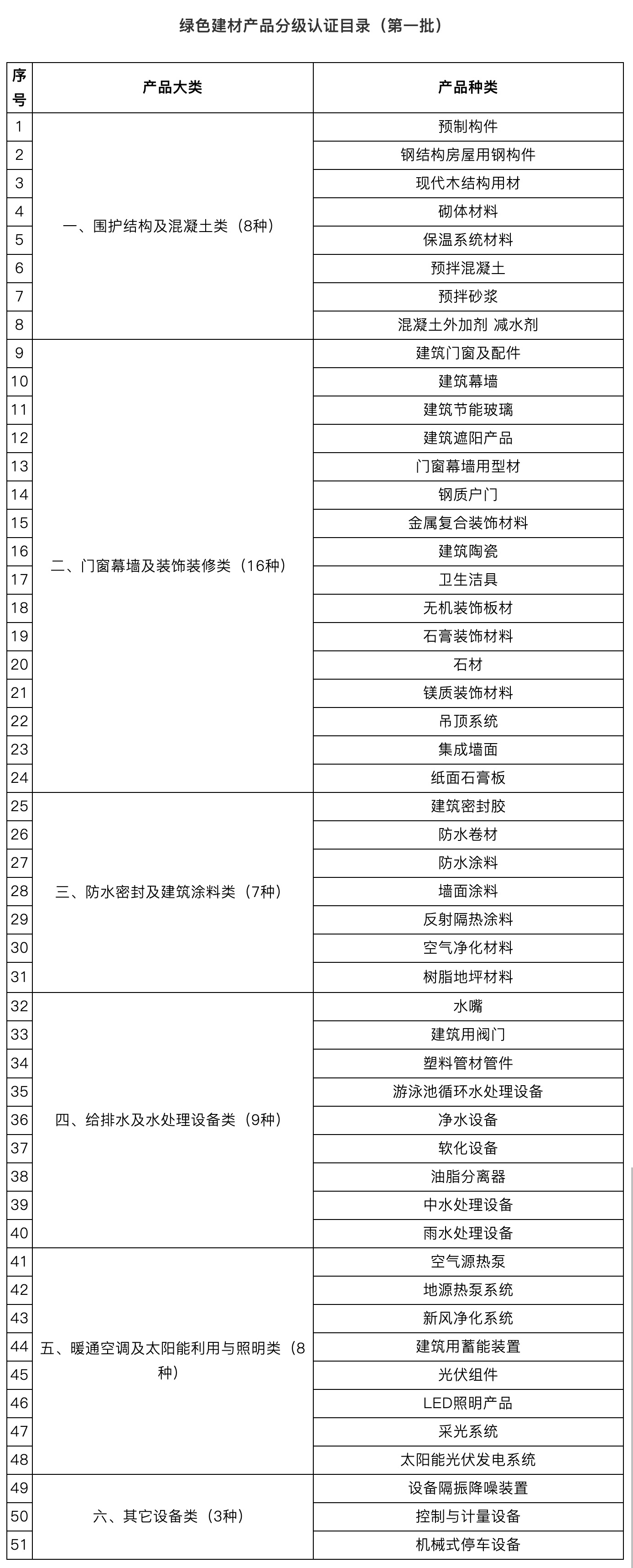 在前期綠色建材評價工作基礎上,加快推進綠色建材產品認證工作,將建筑門窗及配件等51種產品(見附件1)納入綠色建材產品認證實施范圍,按照《實施方案》要求實施分級認證。根據行業發展和認證工作需要,三部門還將適時把其他建材產品納入實施范圍。