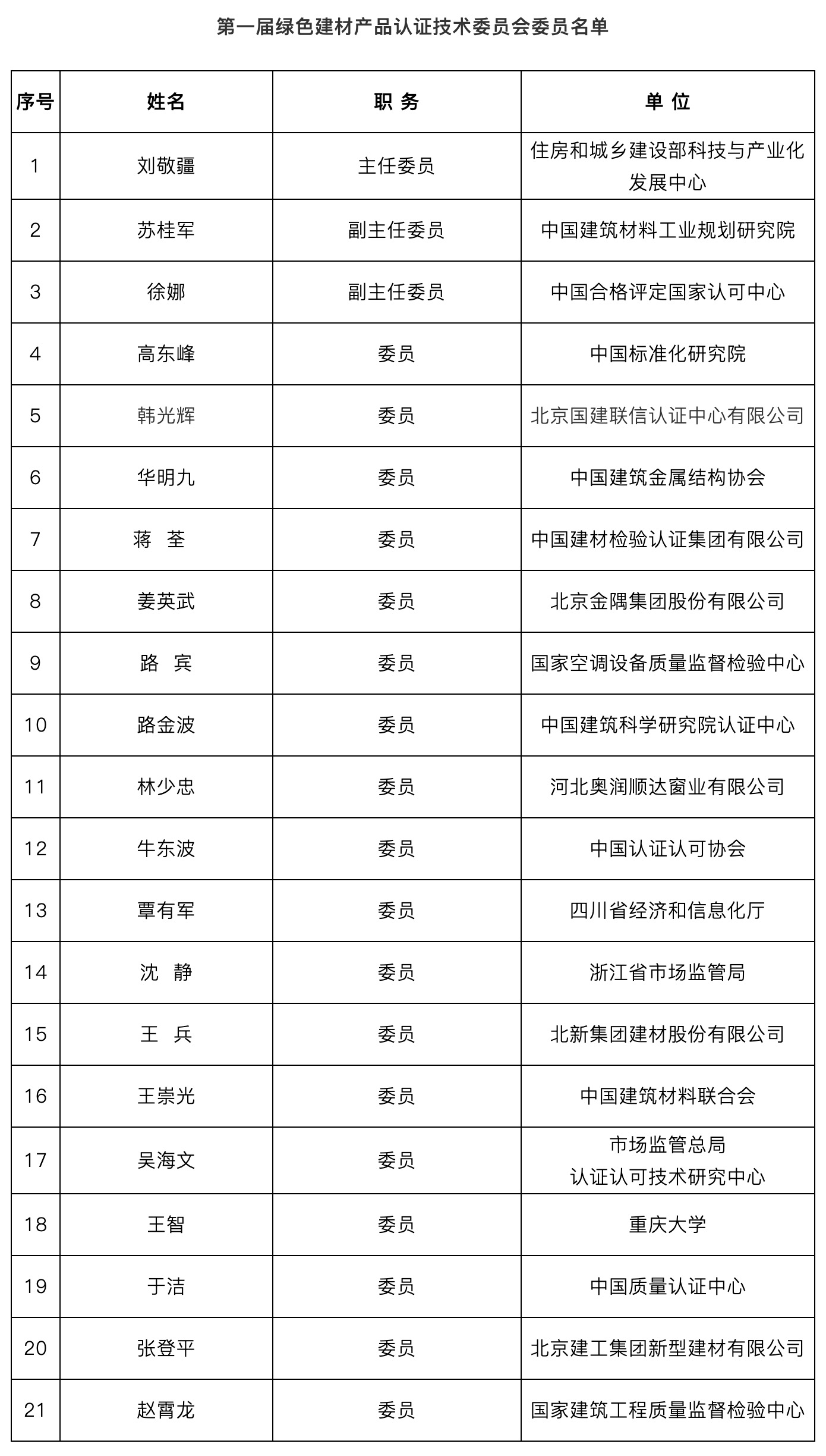 組建綠色建材產品認證技術委員會,為綠色建材產品認證工作提供決策咨詢和技術支持。第一屆技術委員會委員名單附后(見附件3),秘書處設在中國建筑材料工業規劃研究院,負責技術委員會日常工作。