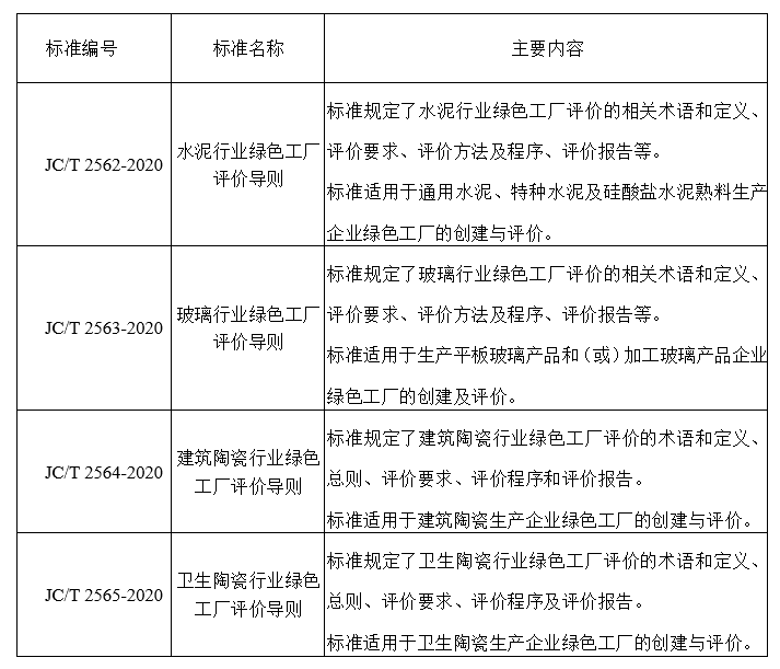 國(guó)建聯(lián)信認(rèn)證中心作為主要起草單位參與制定的水泥、玻璃、建筑陶瓷及衛(wèi)生陶瓷行業(yè)綠色工廠評(píng)價(jià)導(dǎo)則四項(xiàng)標(biāo)準(zhǔn)經(jīng)過(guò)近三年的研制,本次正式發(fā)布。將于2020年10月1日正式實(shí)施。