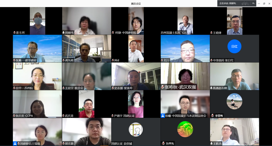 2020年8月17日,中國建筑材料聯合會在線上組織召開由中國混凝土與水泥制品協會、北京國建聯信認證中心有限公司等單位負責起草完成的《水泥制品行業綠色工廠評價要求》(計劃號:2018-1510T-JC)行業標準審查會,會議由中國建筑材料聯合會科技教育委員會秘書長周麗瑋教授主持。標準完成單位國建聯信認證中心武慶濤總經理出席會議并致辭。