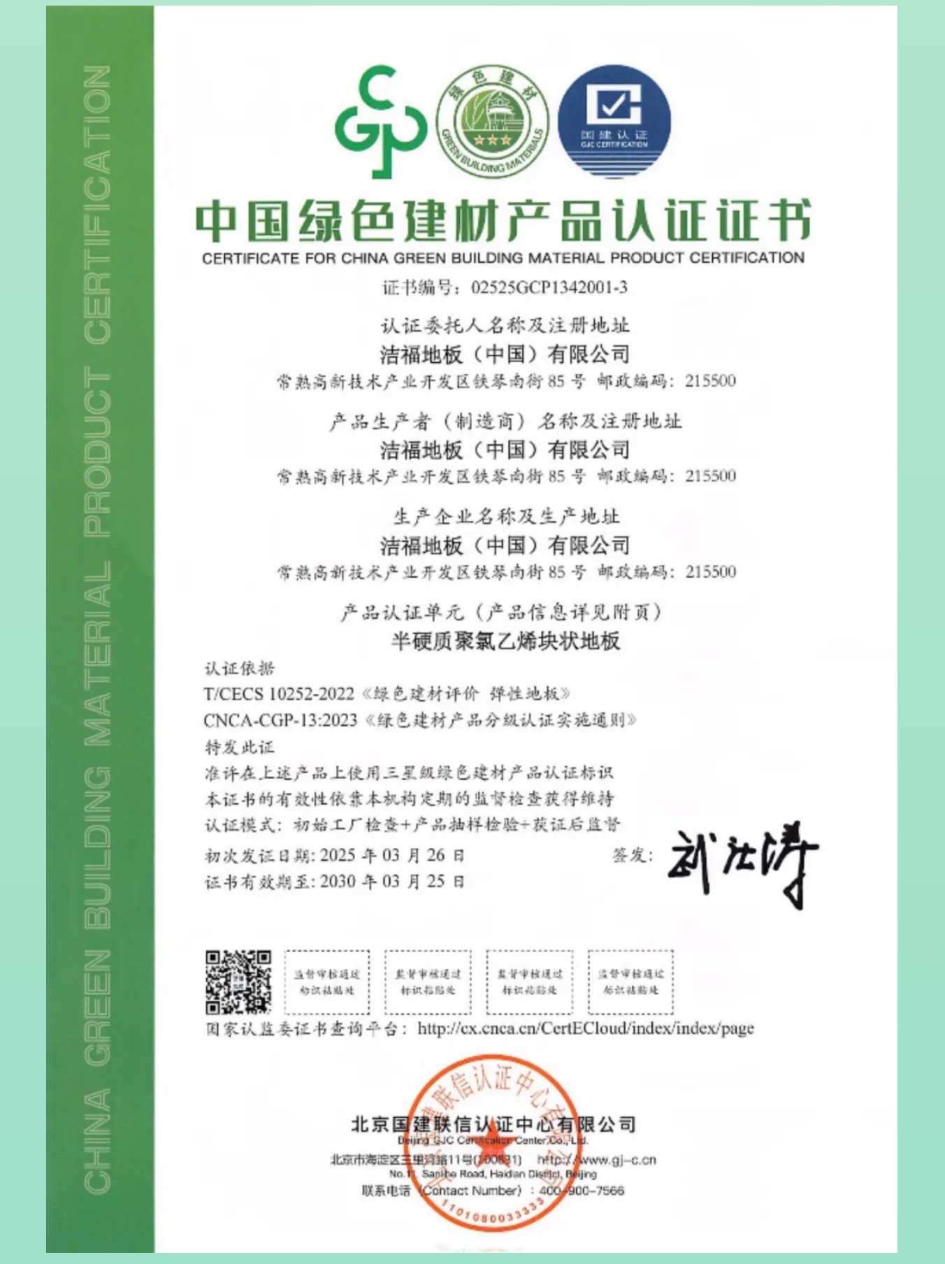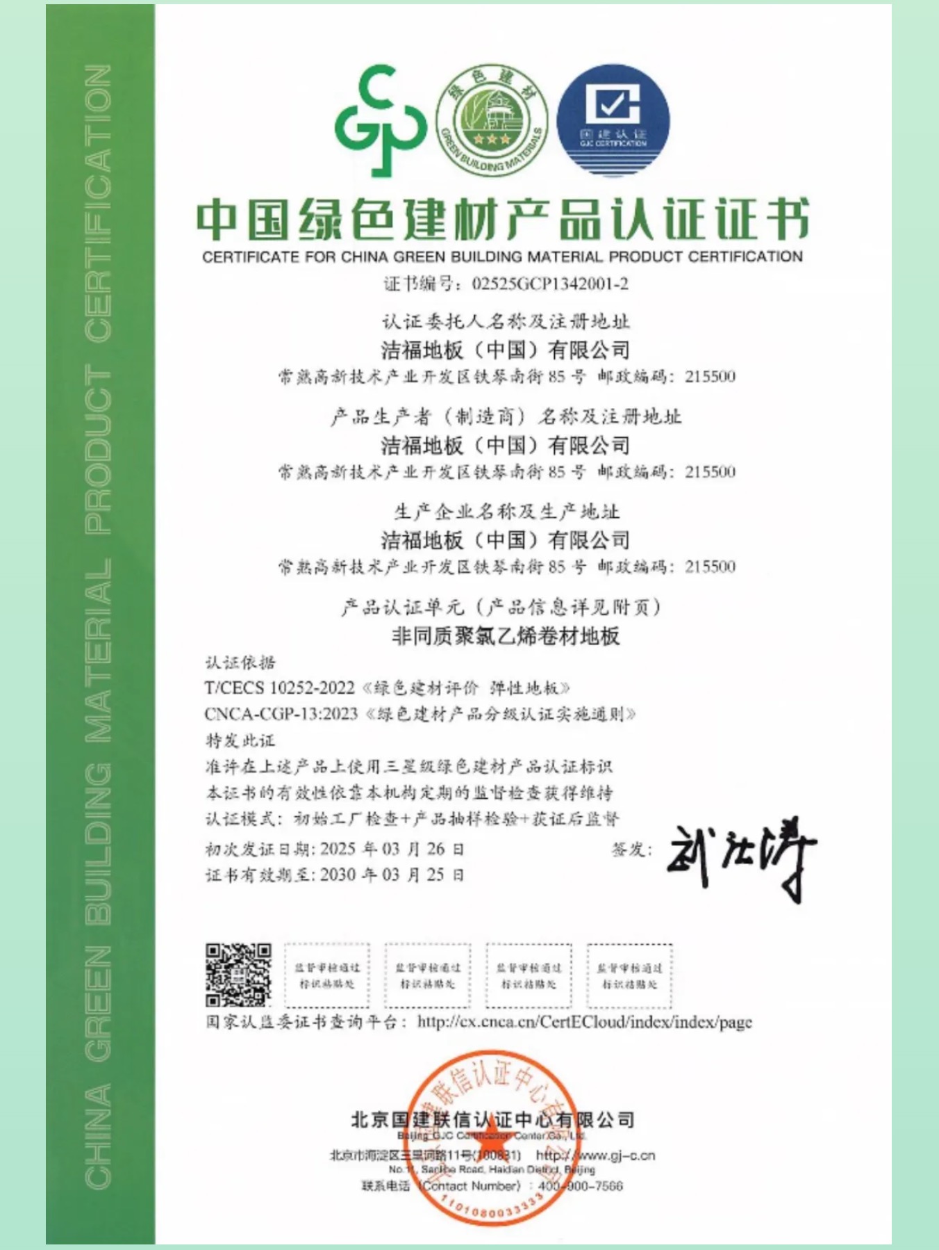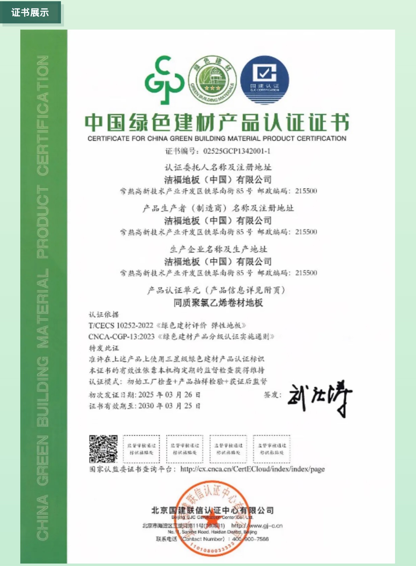 國建認(rèn)證頒發(fā)第二批綠色建材產(chǎn)品認(rèn)證證書