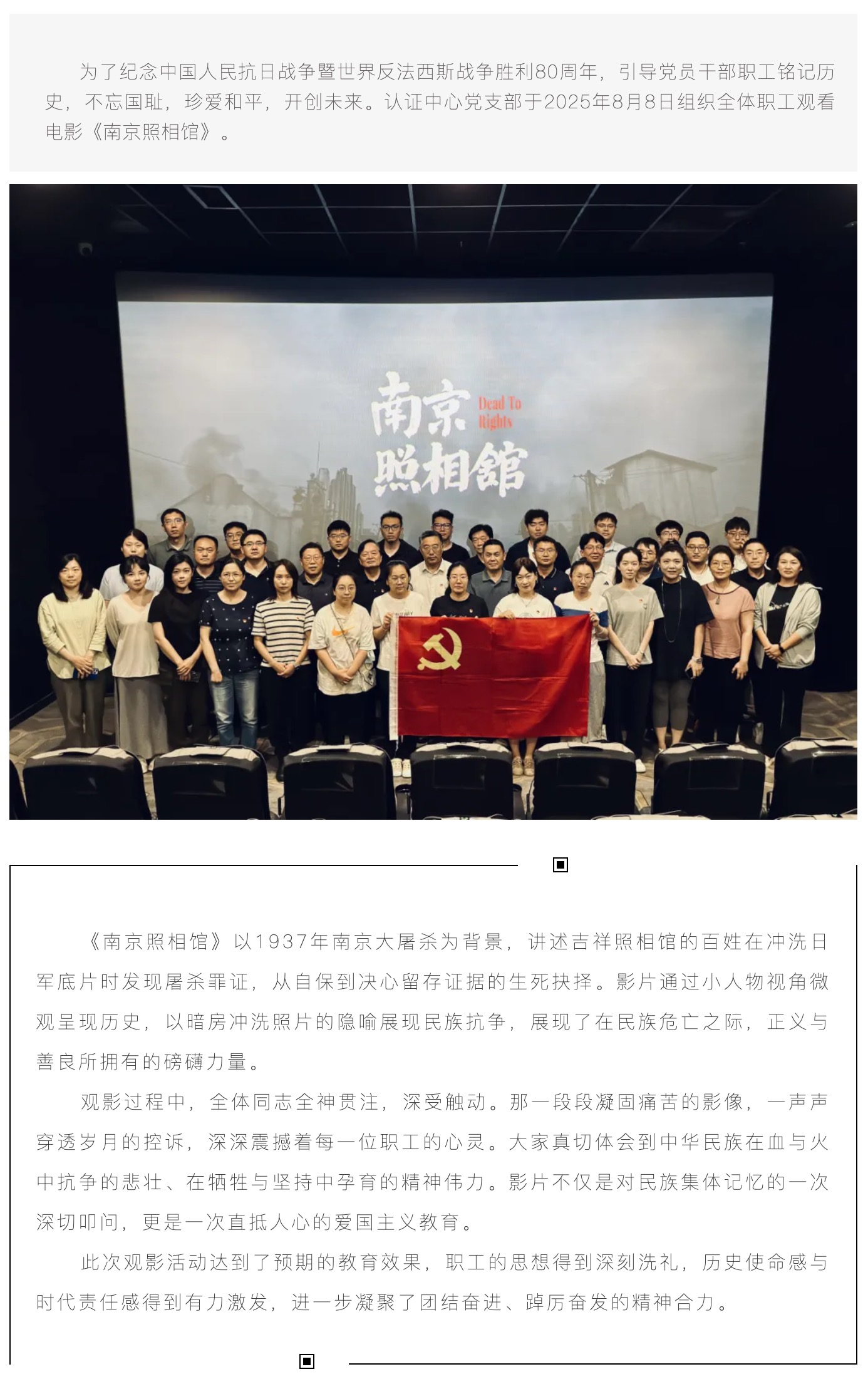 銘記歷史 珍愛和平——認證中心黨支部組織開展《南京照相館》觀影活動