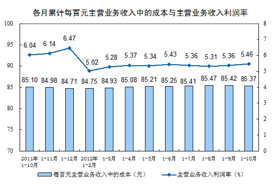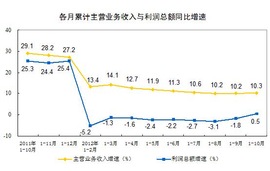 1-10月份全國規模以上工業企業實現利潤同比增長0.5%