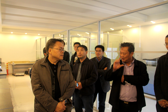 高云虎司長首先參觀了位于該中心位于三樓的能效評估實驗室,重點考察了熱能效評估區、電能效評估區、環境測試區、建筑部品測試區,以及資源綜合利用實驗室。建材工業能效評估中心常務副主任高旭東、副主任索也兵就實驗設備、主要功能、評測結果等主要內容向工信部領導和劉長發院長進行了詳細的介紹。期間,高云虎司長及各處處長與能效評估中心人員交換意見,就如何更好地發揮能效評估中心實驗室協助政府、服務企業,更好的在行業內推廣能效評估工作進行深入探討。
