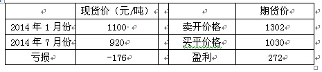 再次,現貨價格從2013年的1400左右降到當前的1100,仍然處于下跌的趨勢中,只有進行套期保值,才能實現2014年的總體計劃,實現扭虧為盈;否則,根據當前形勢,如果不進行套期保值,企業虧損會更加惡化。