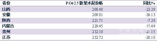 表1: 5月底P.O42.5散裝水泥價格低于240元/噸的省份