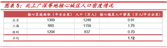 我們對比北上深等地核心人口密度,我們認為10年后雄安新區的遷入人口可能在300萬左右,總計常住人口將達到500萬。