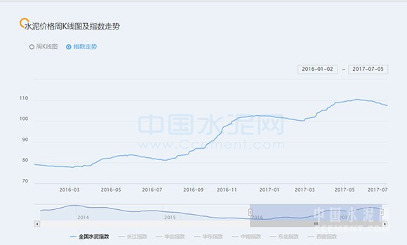 ??據Wind數據,2017年6月30日中國水泥價格指數為107.88,與上年同期相比大漲31.28%。事實上,目前中國水泥價格指數已創下近三年來的新高。
