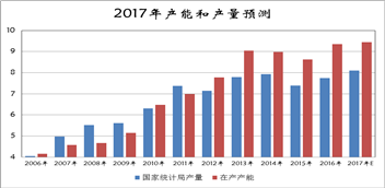 圖6 2017年玻璃產(chǎn)能和產(chǎn)量預(yù)測(cè)