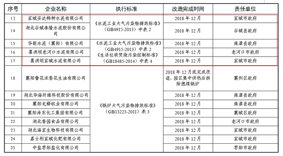 ??重點企業實施特別排放限值技術改造企業名單中包括多家水泥企業,改造執行標準為《水泥工業大氣污染物排放標準》(GB4915-2013)中表2。改造完成時間為2018年12月。
