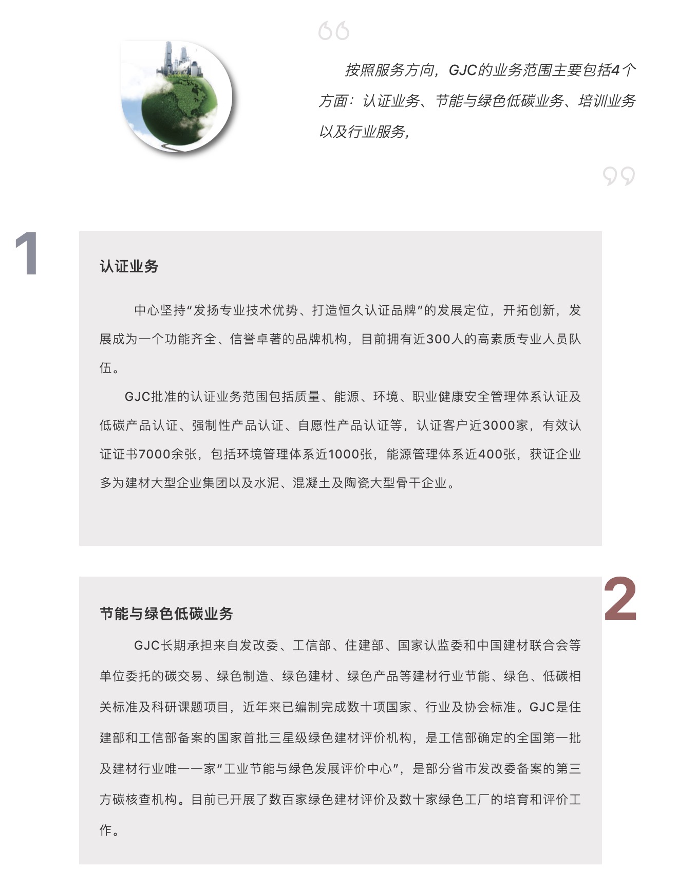 GJC系國家認(rèn)監(jiān)委《能源管理體系水泥/玻璃/陶瓷企業(yè)認(rèn)證要求》系列標(biāo)準(zhǔn)的起草者,2010年,經(jīng)國家認(rèn)監(jiān)委授權(quán),GJC成為首批開展建材行業(yè)能源管理體系認(rèn)證的機(jī)構(gòu),目前已有400余家知名建材企業(yè)通過本中心能源管理體系認(rèn)證。