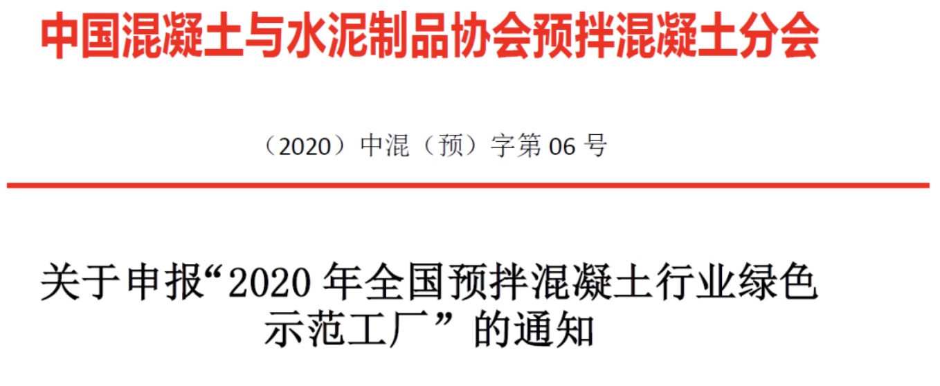 關于申報“2020年全國預拌混凝土行業綠色示范工廠”的通知