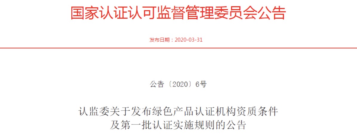 認(rèn)監(jiān)委關(guān)于發(fā)布綠色產(chǎn)品認(rèn)證機構(gòu)資質(zhì)條件及第一批
