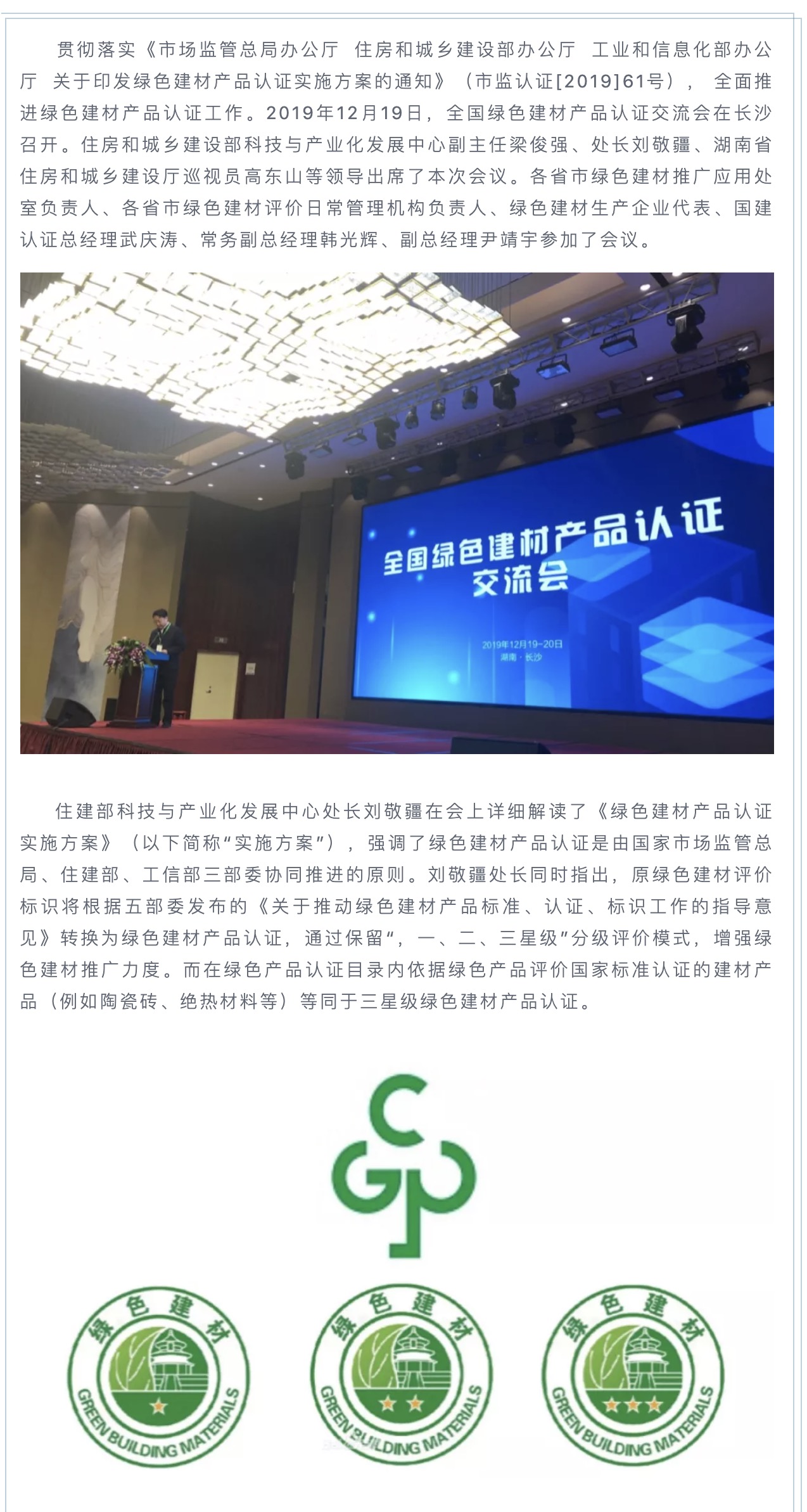 摘要:2019年12月19日,全國綠色建材產品認證交流會在長沙召開。住房和城鄉建設部科技與產業化發展中心副主任梁俊強、處長劉敬疆、湖南省住房和城鄉建設廳巡視員高東山等領導出席了本次會議。各省市綠色建材推廣應用處室負責人、各省市綠色建材評價日常管理機構負責人、綠色建材生產企業代表等200余人參加會議,會議由住房和城鄉建設部科技與產業化發展中心處長劉敬疆主持。
