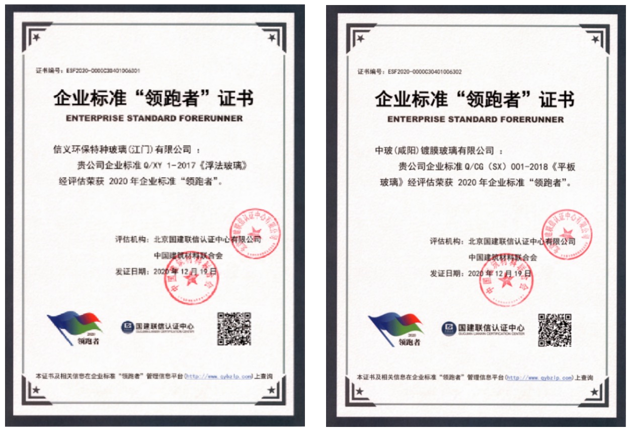 平板玻璃行業榮獲2020年第一批企業標準“領跑者”的標準分別為:Q/XY 1-2017《浮法玻璃》、Q/CG(SX) 001-2018《平板玻璃》。