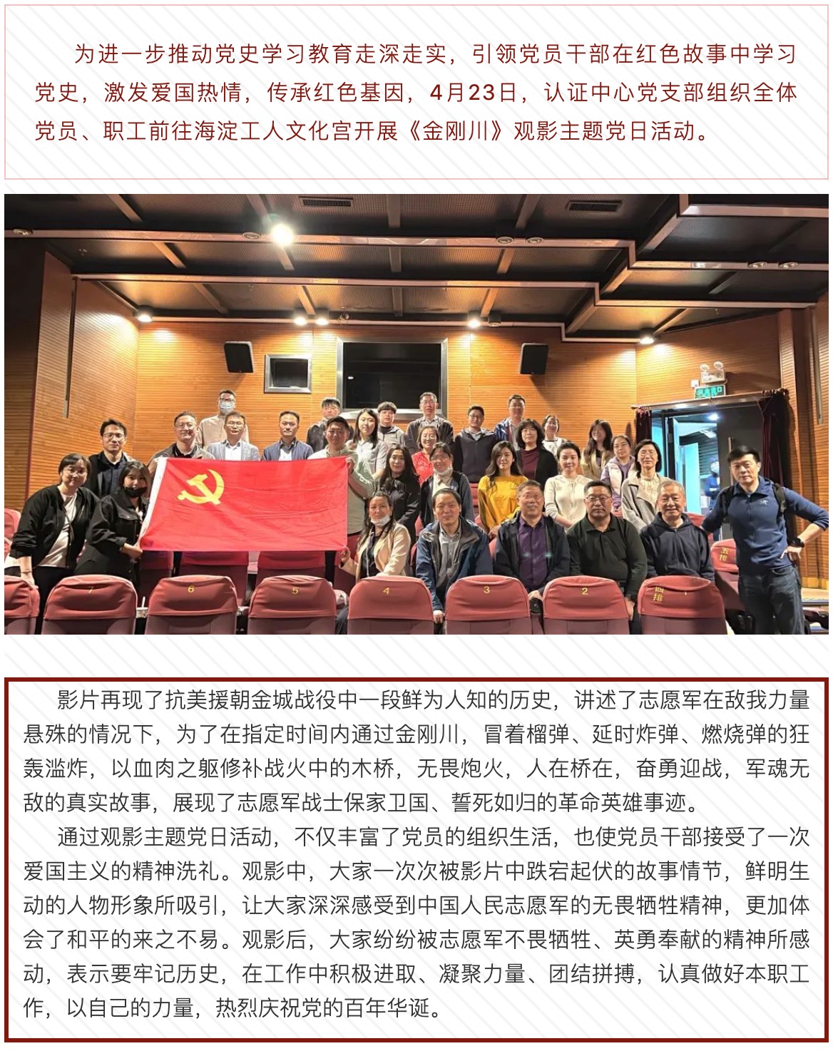 認(rèn)證中心黨支部開展《金剛川》觀影主題黨日活動