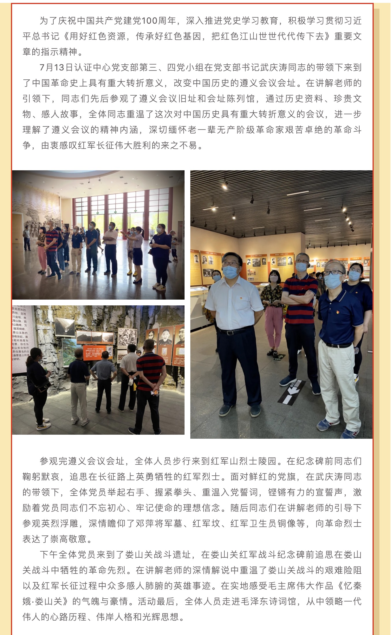 “慶建黨百年·憶紅色初心”——認(rèn)證中心黨支部第三、四黨小組赴遵義開展主題黨日活動(dòng)