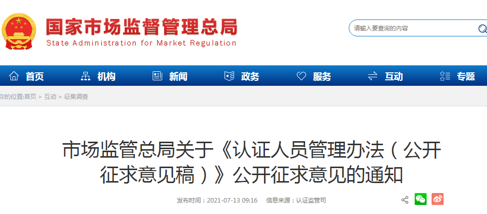 近日,國家市場監督管理總局對《認證人員管理辦法(公開征求意見稿)》公開征求意見,并發布《認證人員管理辦法(公開征求意見稿)》起草說明,對修訂的必要性和修訂的主要內容作了說明。
