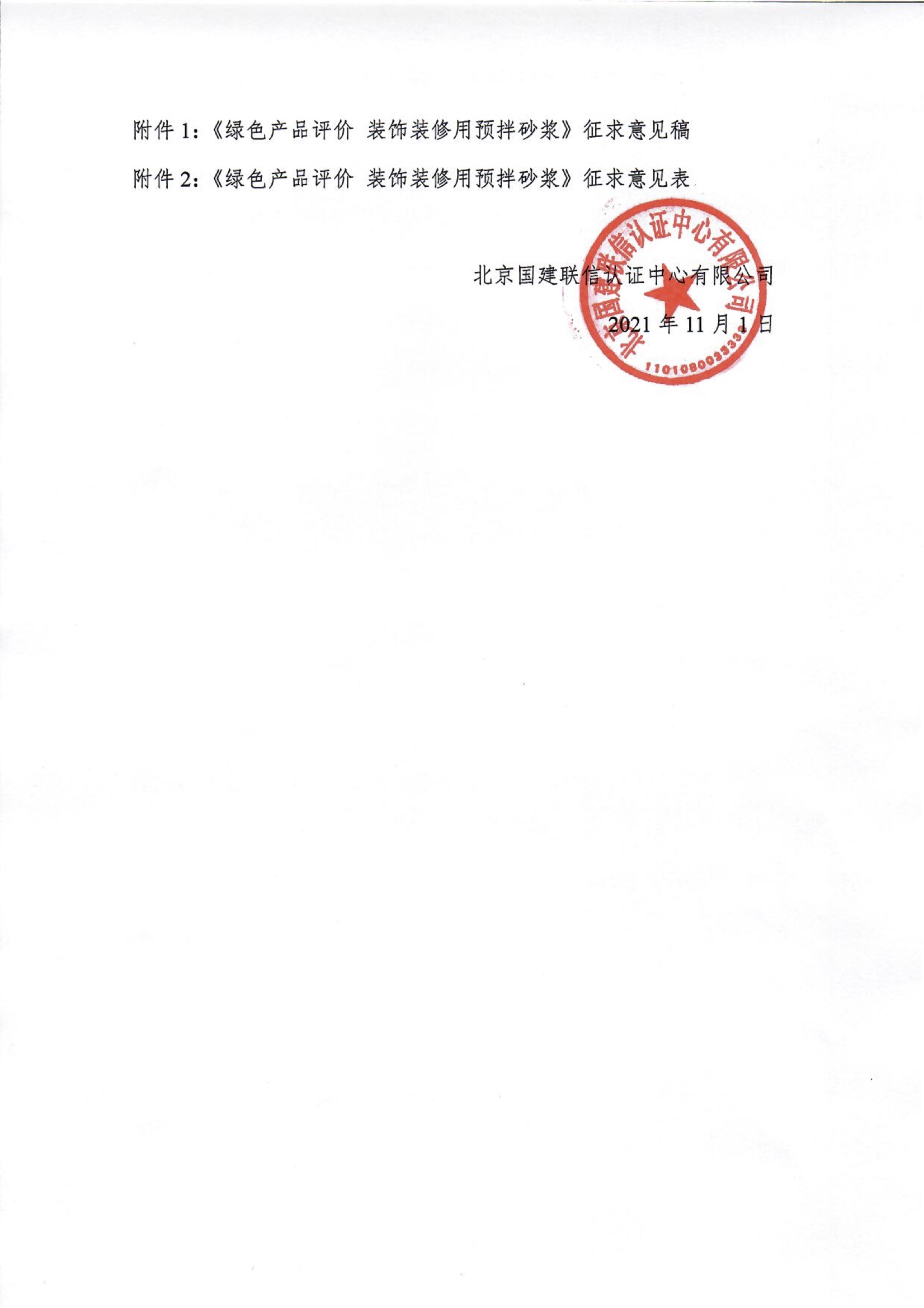 《綠色產品評價 裝飾裝修用預拌砂漿》國家標準 公開征求意見