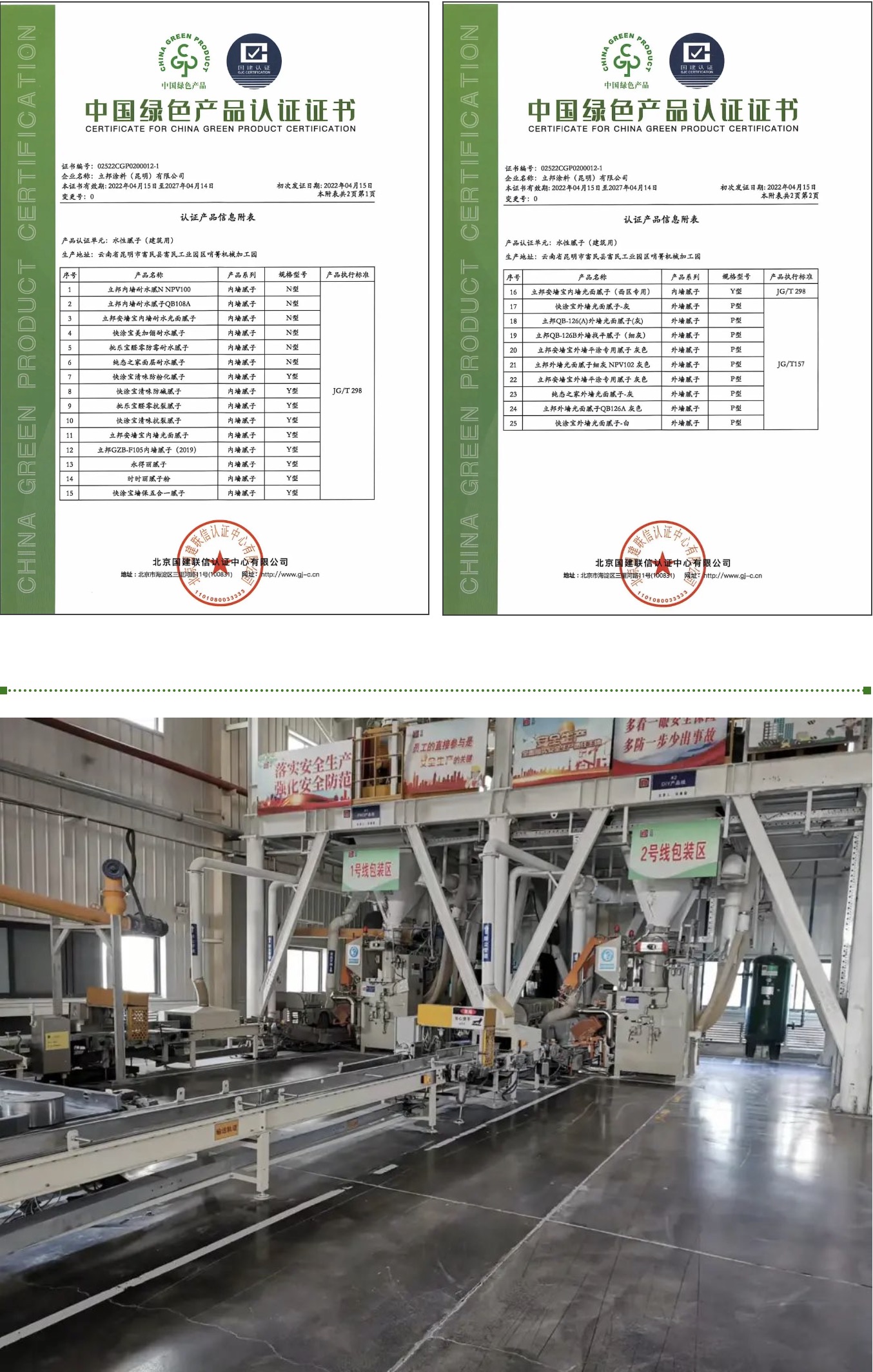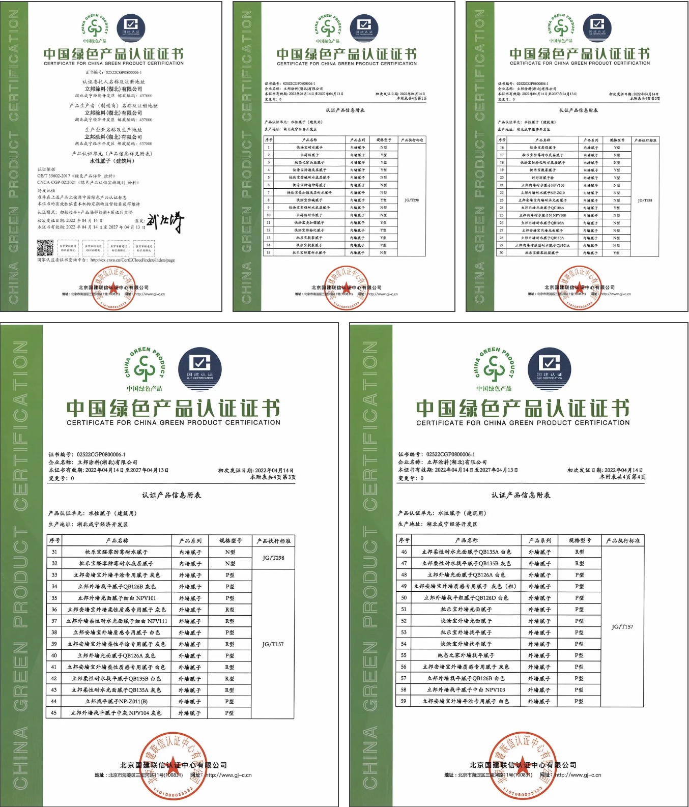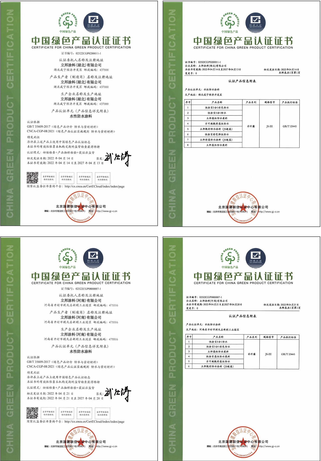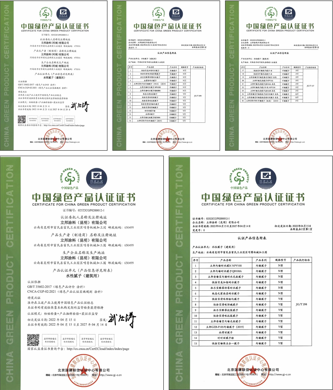 近日,立邦旗下三家工廠:立邦涂料(湖北)有限公司、立邦涂料(昆明)有限公司、立邦涂料(河南)有限公司喜獲國建認證頒發的“中國綠色產品認證證書”。