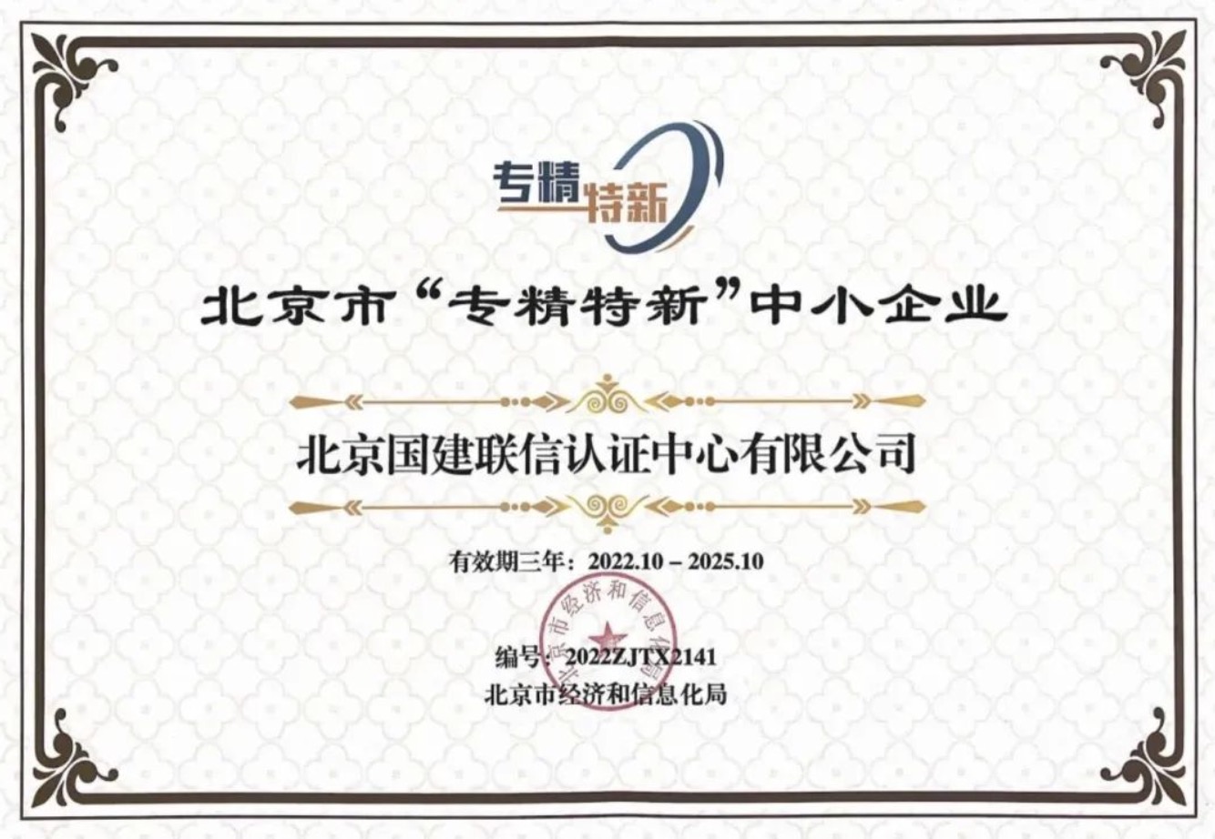 喜訊!國建聯信獲得北京市“專精特新”中小企業稱號