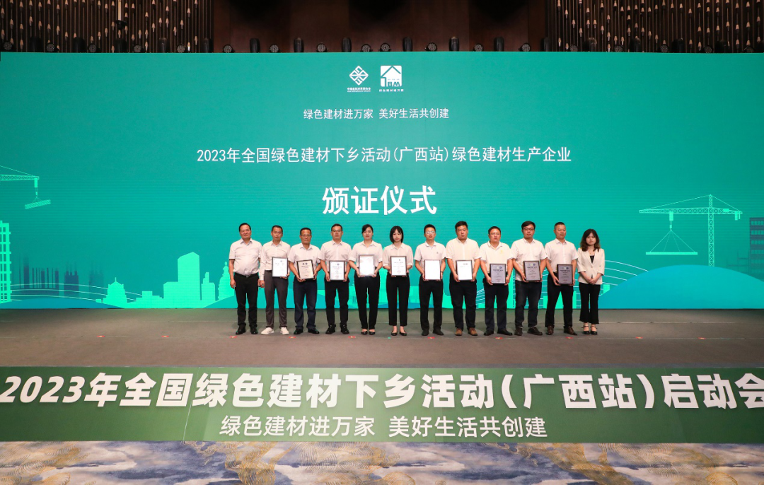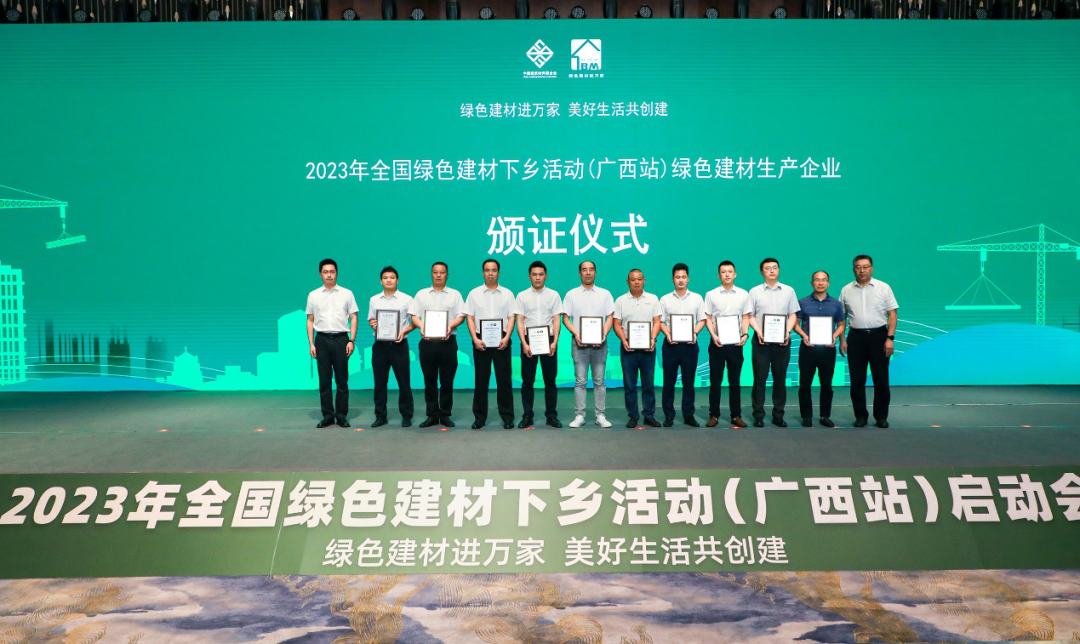 主辦方授予西牛皮防水科技有限公司等32家企業“廣西綠色建材下鄉活動推廣企業”稱號。